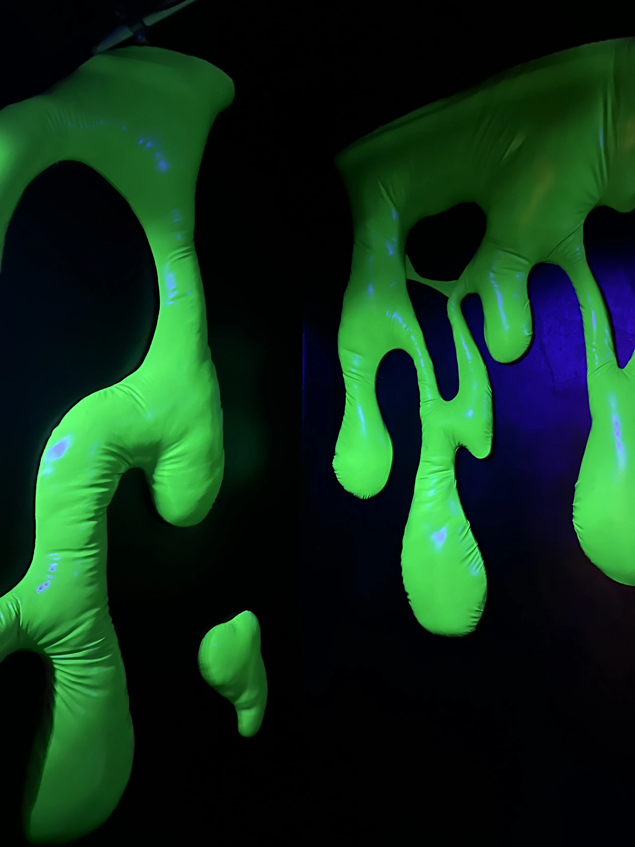 "Enslimed" is an immersive art installation designed by Lilia Deering, a Seattle-based artist with a background in large-scale installation, sculpture, and performance art. In this piece, Deering draws upon her experience creating unexpected immersive environments to subvert the sterile aesthetics of the modern restroom space.